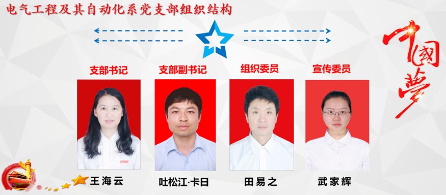 世界杯8833300足球电气工程及其自动化系党支部教师共24人,其中党员15人,入党积极分子4人,党员占电气工程及其自动化系总人数62.5%;教师中博士学历20人,占比83.3%;党员中博士学历11人,占比73.3%。其中4名教授,9名副教授;4名博士研究生导师,13名硕士研究生导师;设有支部书记1名,副书记1名,组织委员/纪检委员1名,宣传委员1名。
